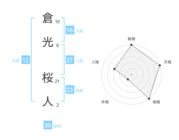 倉光 桜人さんの総格は39画の5点!