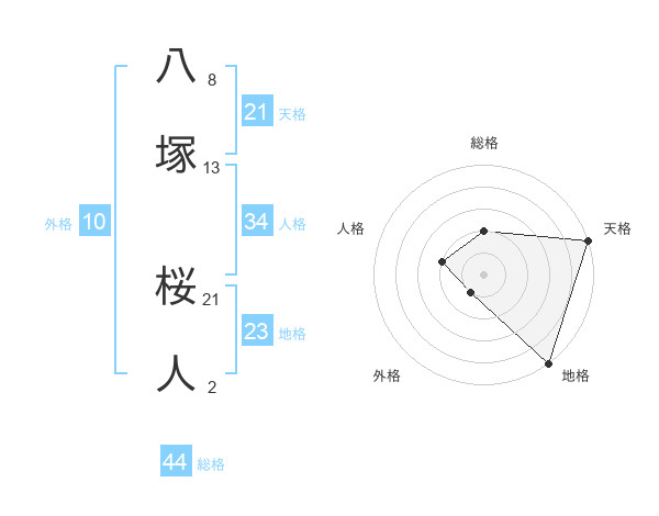 八塚 桜人さんの総格は44画の2点!