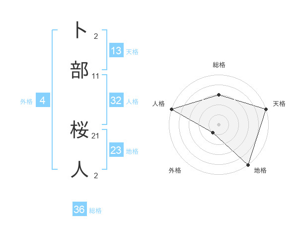 卜部 桜人さんを姓名の画数から五運を鑑定