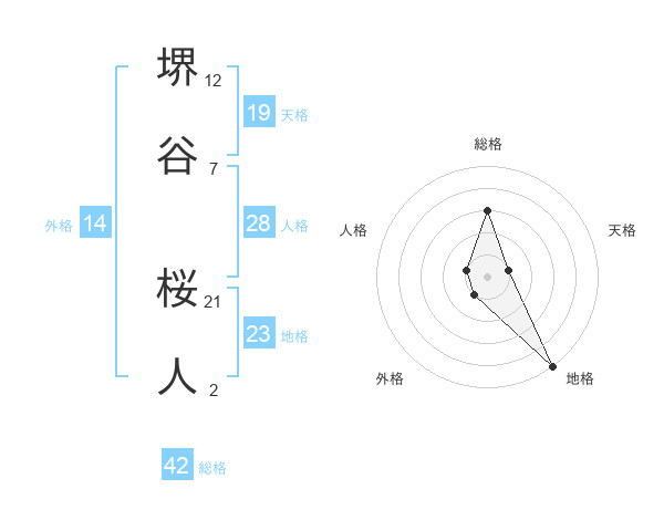 堺谷 桜人さんの総格は42画の3点!