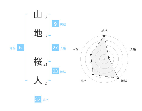 山地 桜人さんの総格は32画の5点!