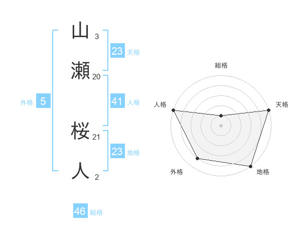 山瀬 桜人さんの天格は23画の5点!