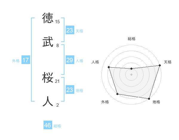 徳武 桜人さんを姓名の画数から五運を鑑定