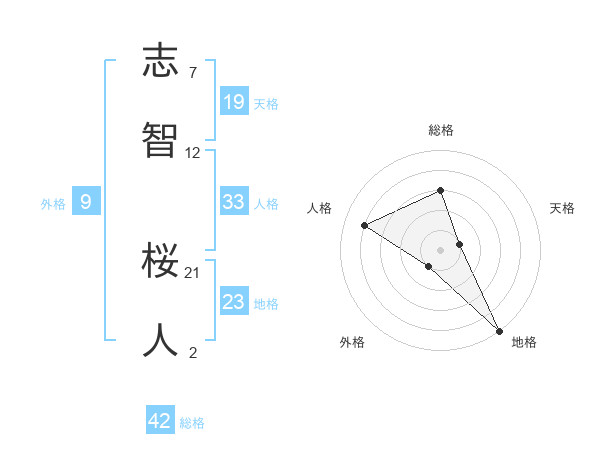 志智 桜人さんの総格は42画の3点!