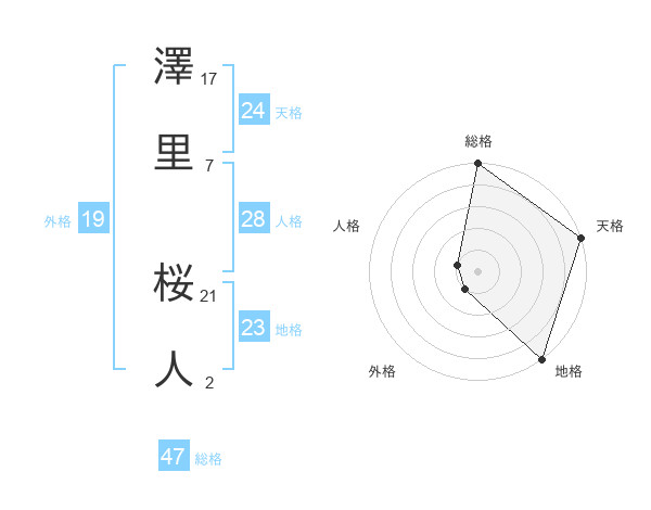 澤里 桜人さんの総格は47画の5点!