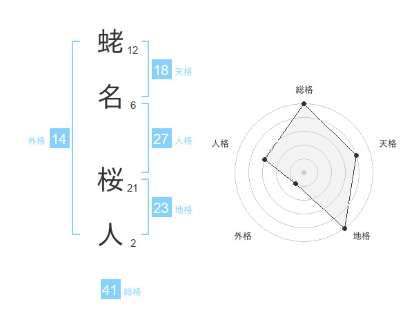 蛯名 桜人さんの総格は41画の5点!