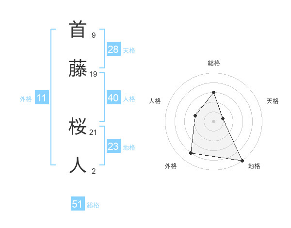 首藤 桜人さんを姓名の画数から五運を鑑定