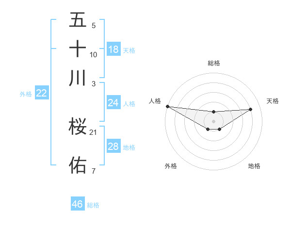 五十川 桜佑さんを姓名の画数から五運を鑑定