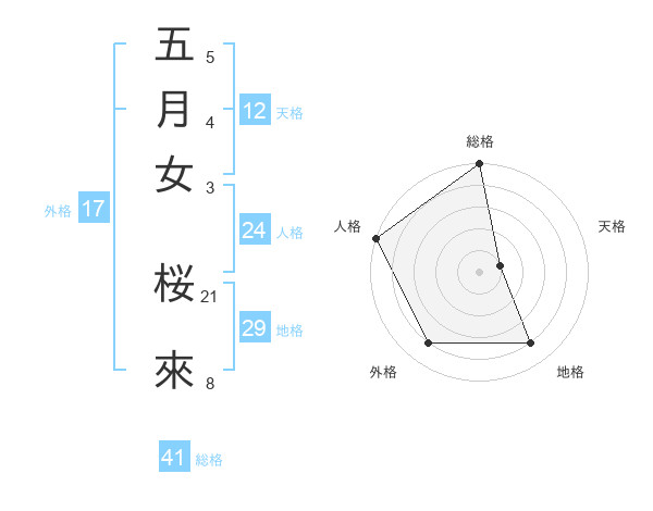 五月女 桜來さんの外格は17画の4点!
