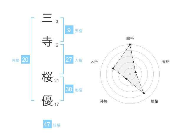 三寺 桜優さんの総格は47画の5点!