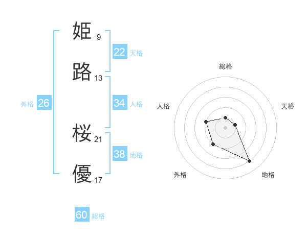 姫路 桜優さんを姓名の画数から五運を鑑定