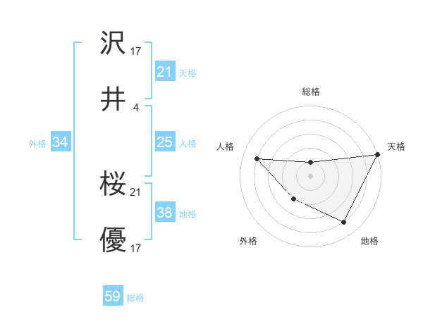 沢井 桜優さんの地格は38画の4点!