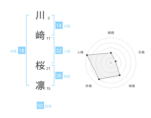 川﨑 桜凛さんの総格は50画の2点!