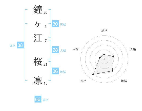 鐘ヶ江 桜凛さんの総格は66画の1点!