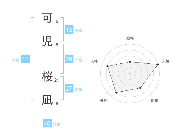 可児 桜凪さんの総格は40画の2点!