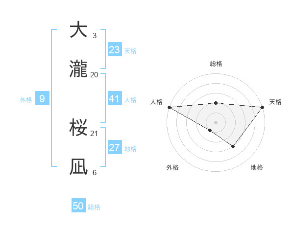 大瀧 桜凪さんを姓名の画数から五運を鑑定