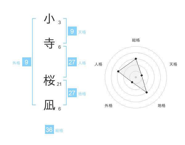 小寺 桜凪さんを姓名の画数から五運を鑑定