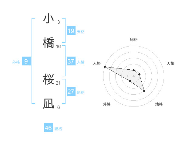 小橋 桜凪さんを姓名の画数から五運を鑑定