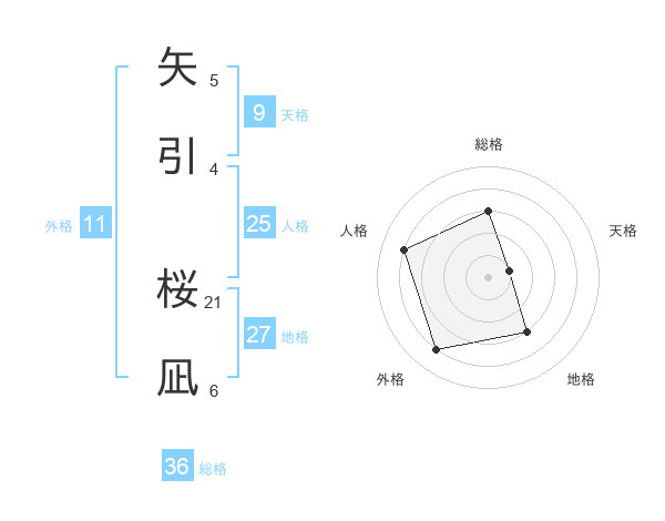 矢引 桜凪さんを姓名の画数から五運を鑑定