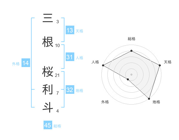 三根 桜利斗さんの天格は13画の5点!