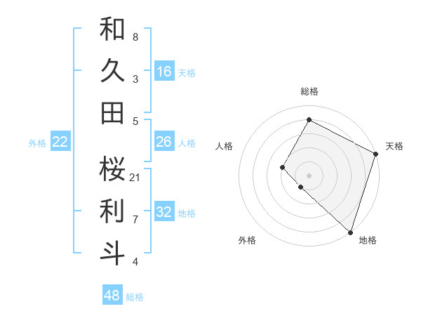 和久田 桜利斗さんを姓名の画数から五運を鑑定