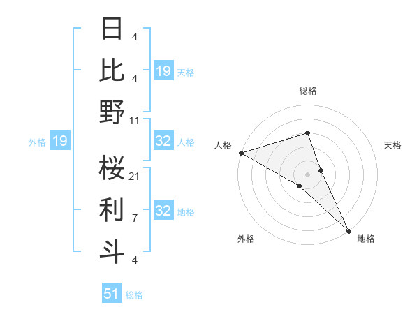日比野 桜利斗さんを姓名の画数から五運を鑑定