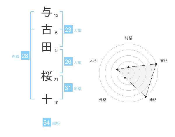 与古田 桜十さんを姓名の画数から五運を鑑定