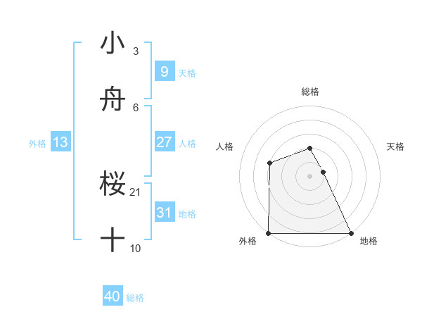 小舟 桜十さんを姓名の画数から五運を鑑定