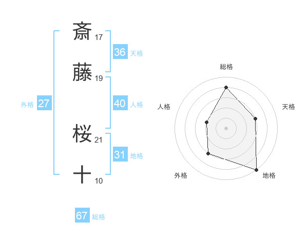 斎藤 桜十さんを姓名の画数から五運を鑑定