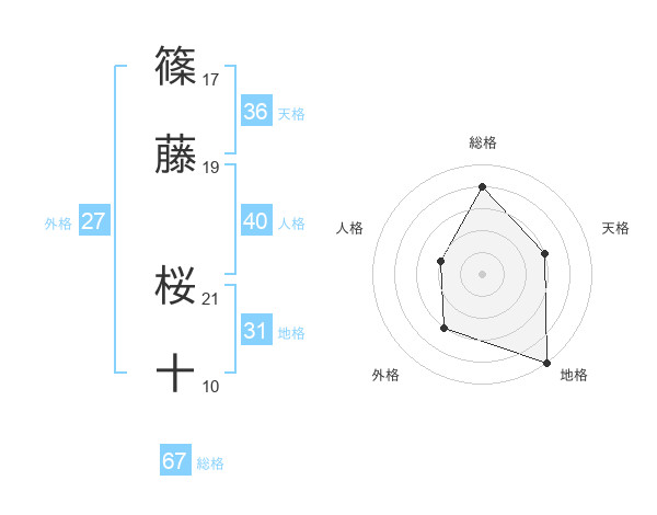 篠藤 桜十さんを姓名の画数から五運を鑑定