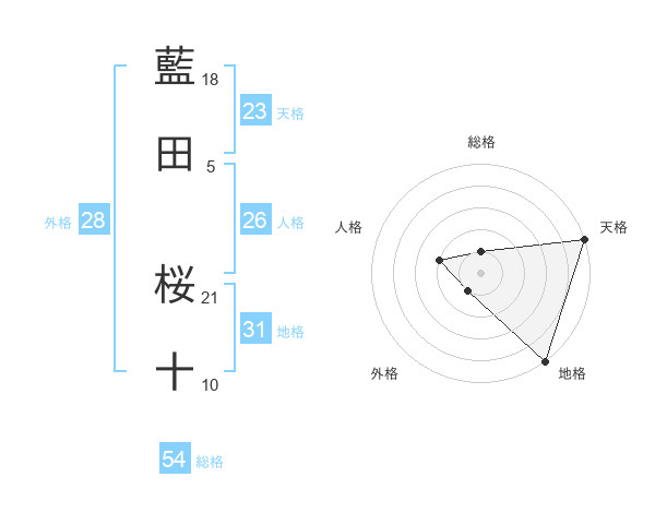 藍田 桜十さんを姓名の画数から五運を鑑定