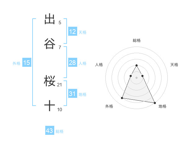 出谷 桜十さんを姓名の画数から五運を鑑定