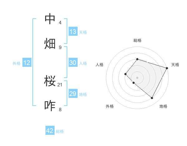 中畑 桜咋さんの天格は13画の5点!