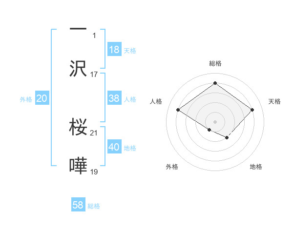 一沢 桜嘩さんを姓名の画数から五運を鑑定