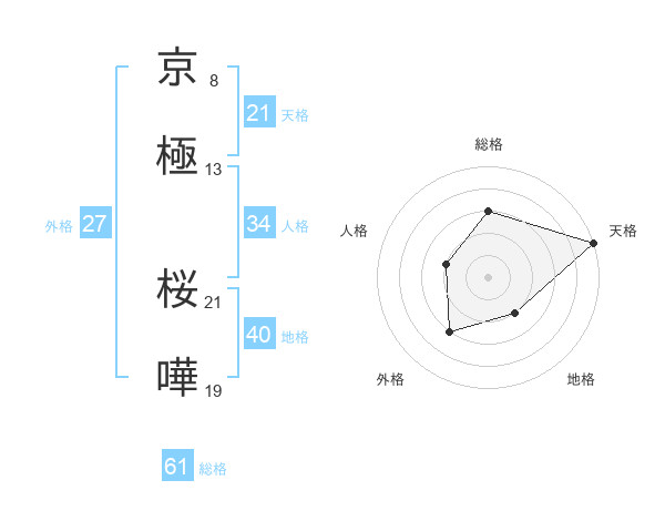 京極 桜嘩さんの総格は61画の3点!