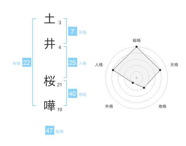 土井 桜嘩さんの総格は47画の5点!