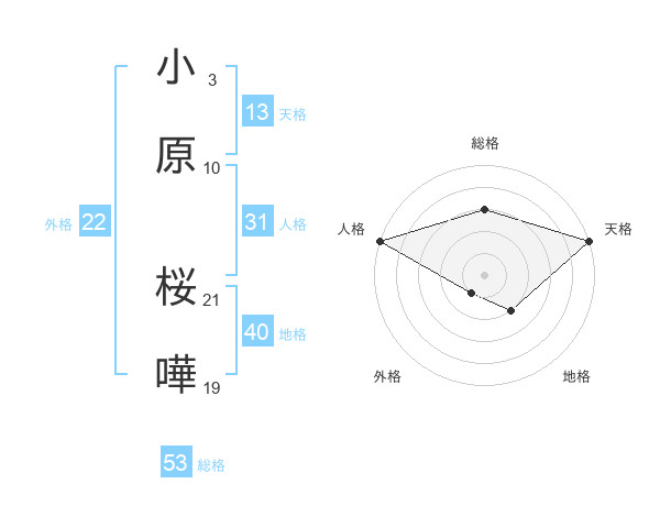 小原 桜嘩さんを姓名の画数から五運を鑑定