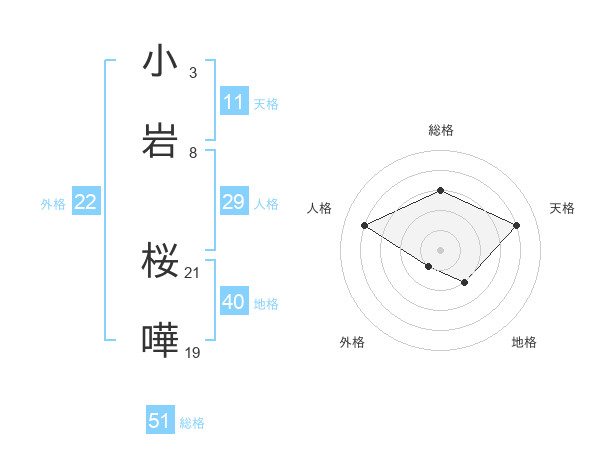 小岩 桜嘩さんの総格は51画の3点!