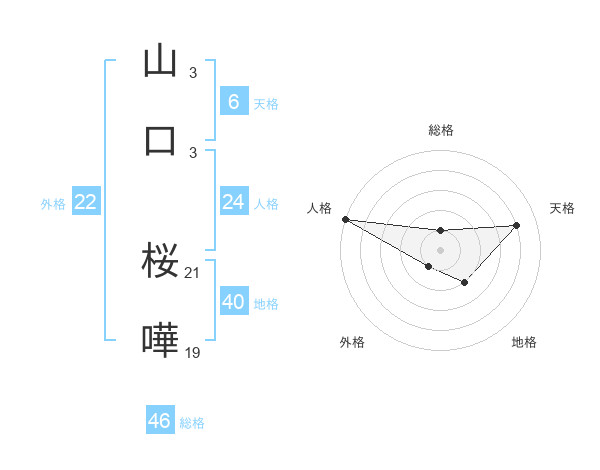 山口 桜嘩さんを姓名の画数から五運を鑑定