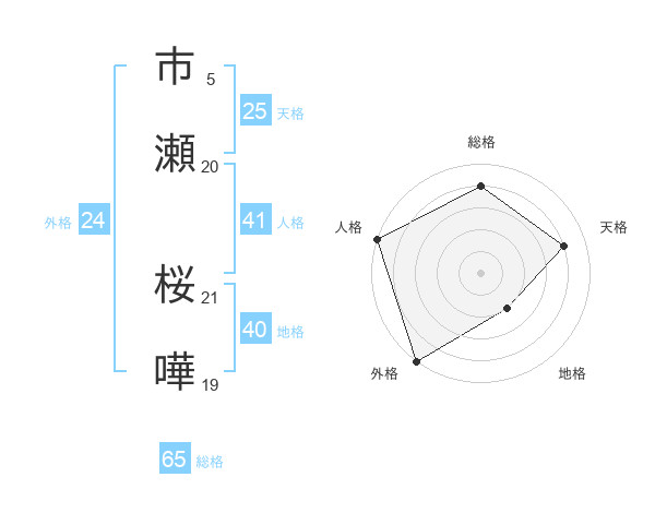 市瀬 桜嘩さんを姓名の画数から五運を鑑定