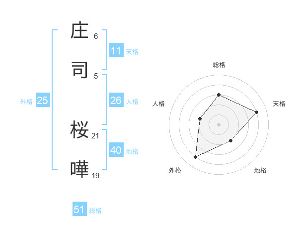 庄司 桜嘩さんを姓名の画数から五運を鑑定