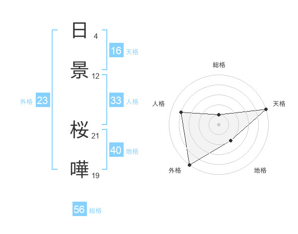 日景 桜嘩さんの総格は56画の1点!