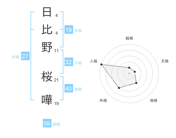 日比野 桜嘩さんを姓名の画数から五運を鑑定
