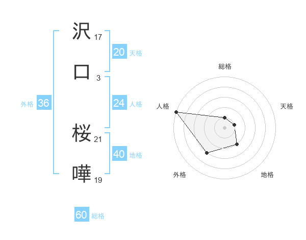 沢口 桜嘩さんを姓名の画数から五運を鑑定