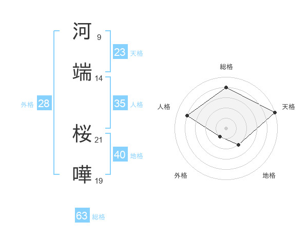 河端 桜嘩さんの天格は23画の5点!