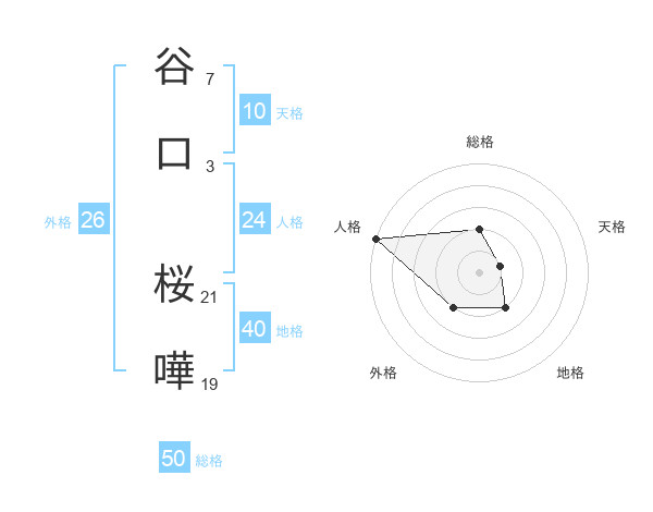 谷口 桜嘩さんを姓名の画数から五運を鑑定
