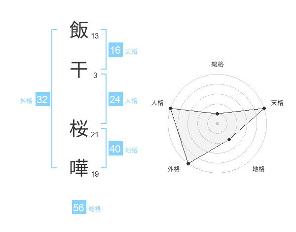 飯干 桜嘩さんの外格は32画の5点!