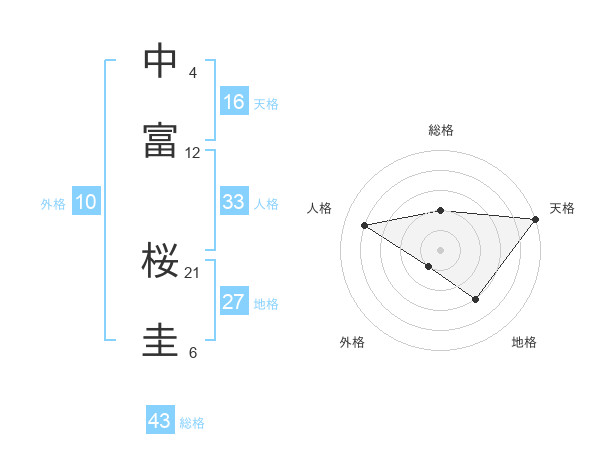 中富 桜圭さんを姓名の画数から五運を鑑定