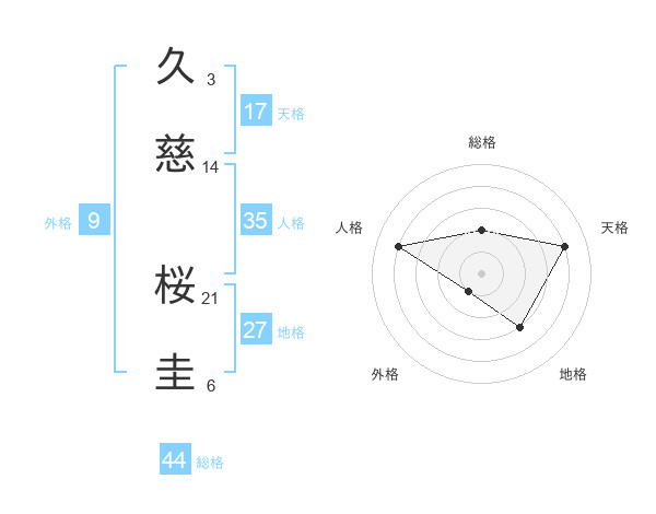 久慈 桜圭さんを姓名の画数から五運を鑑定