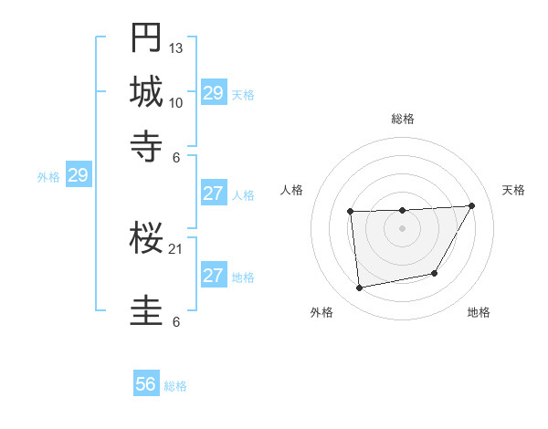円城寺 桜圭さんを姓名の画数から五運を鑑定